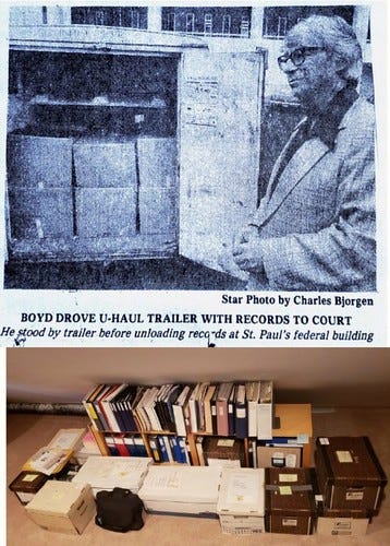 I never found the pony. Neither did the FBI. The papers belonged to Donald Boyd, who was being set up as a patsy to save Minnesota’s Democratic Party. Anticipating this, Don organized more evidence than the FBI was willing to wade through. He left a trailer full of records at the FBI’s doorstep, making sure that the press took a picture of his documents.